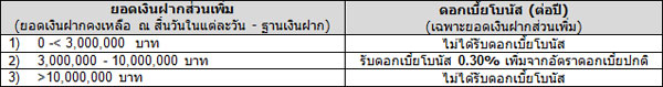 2.3 อัตราดอกเบี้ยโบนัส สำหรับยอดเงินฝากส่วนเพิ่ม