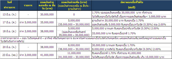 - ตัวอย่างการรับอัตราดอกเบี้ยโบนัส