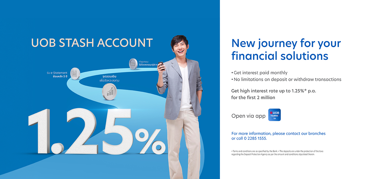Get high interest rate up to 1.25%* p.a. for the first 2 million baht simply by maintaining balance