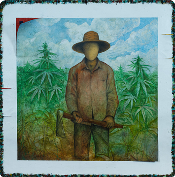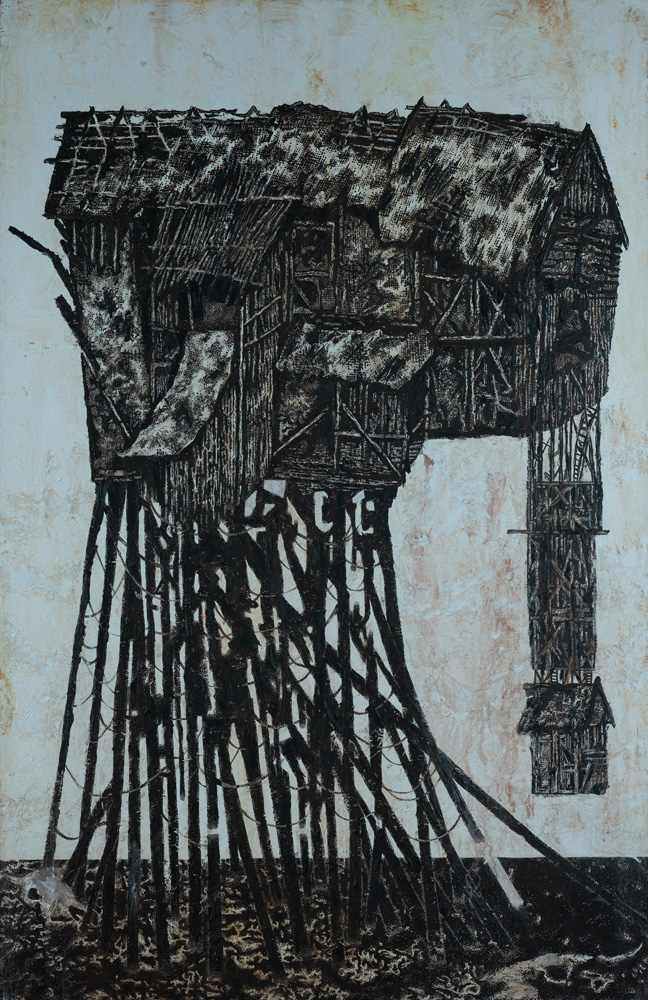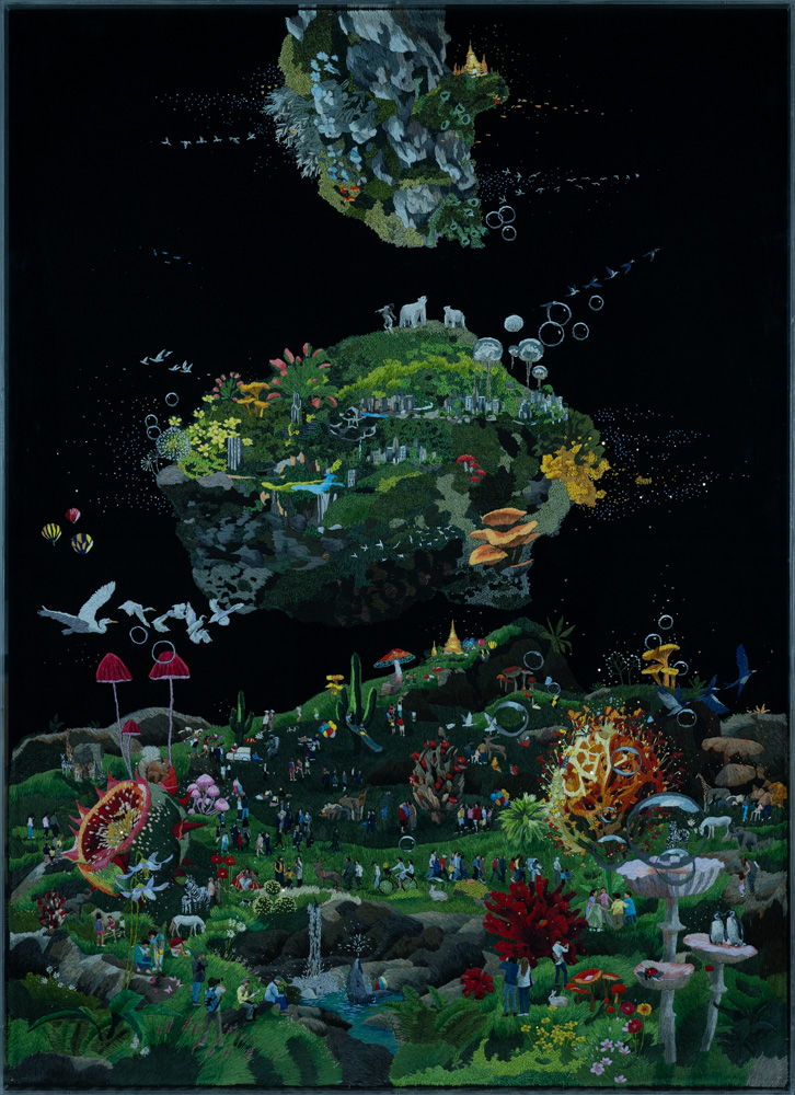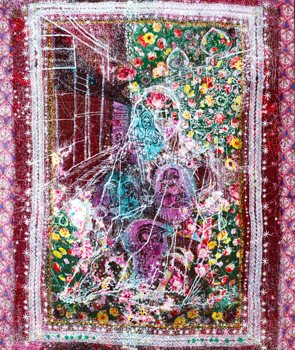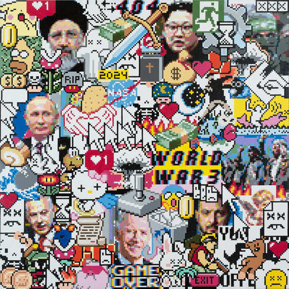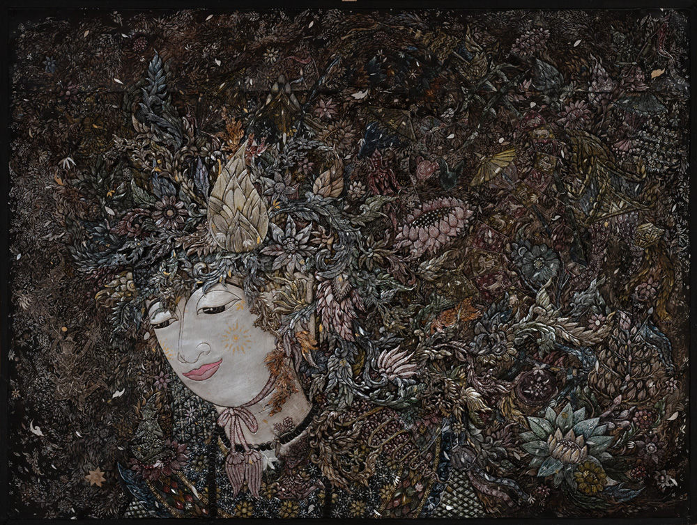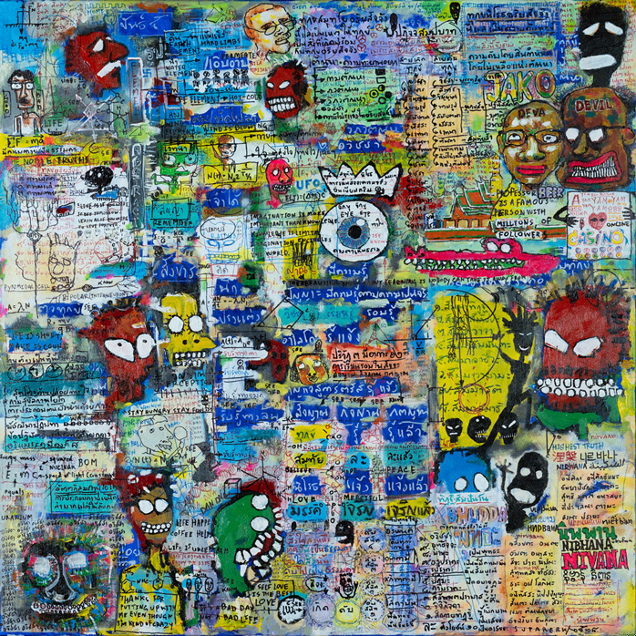 Medium: สีอะคริลิกและตัดปะบนผ้าใบ | Acrylic and collage on canvas