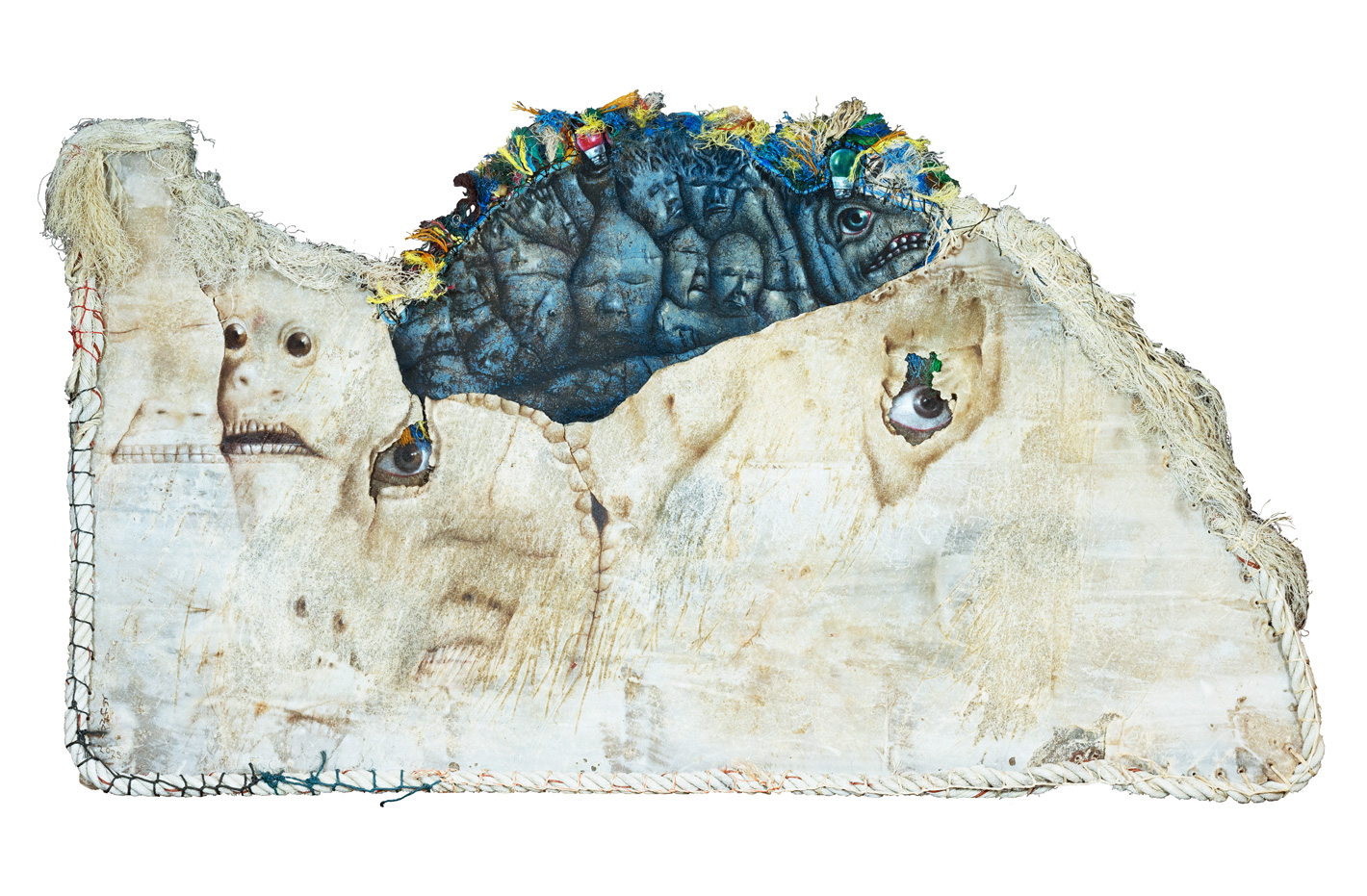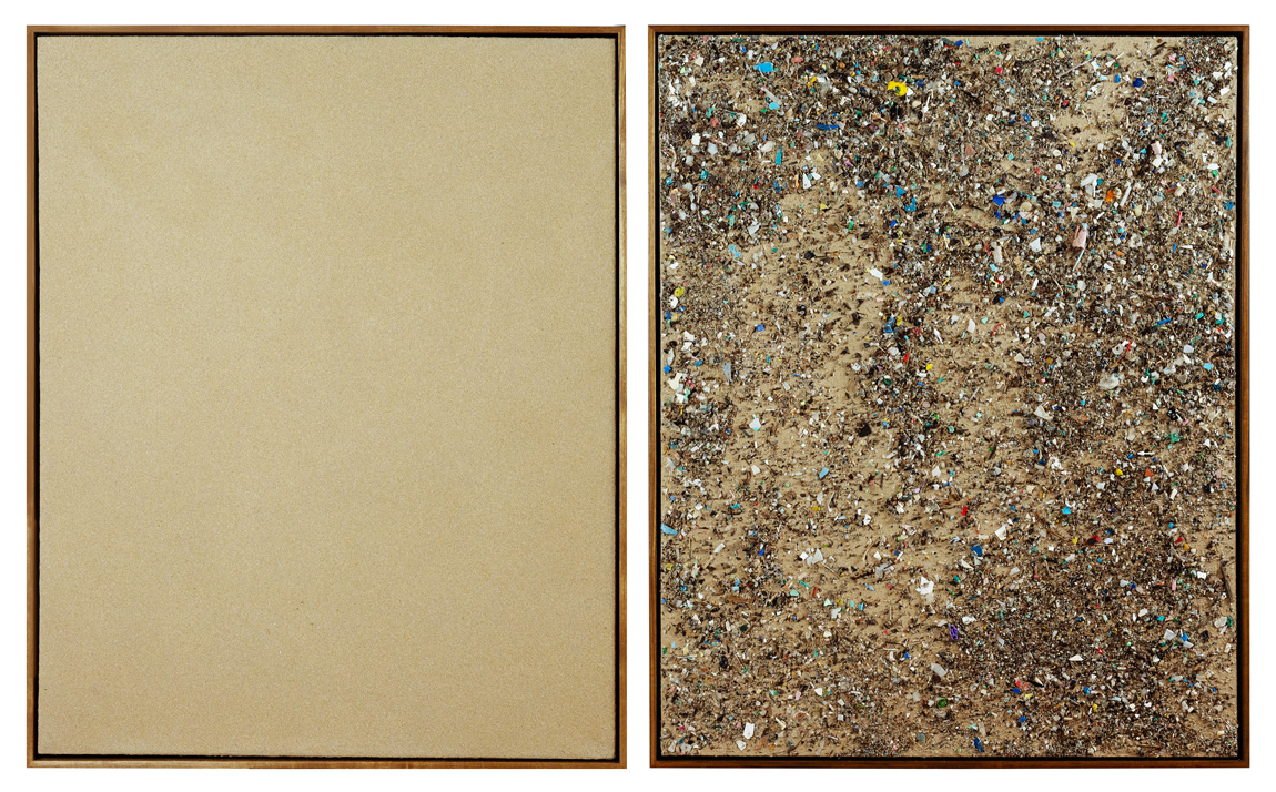 สีน้ำมันบนขยะจากทะเล ไฟเบอร์กลาส และเชือก |
