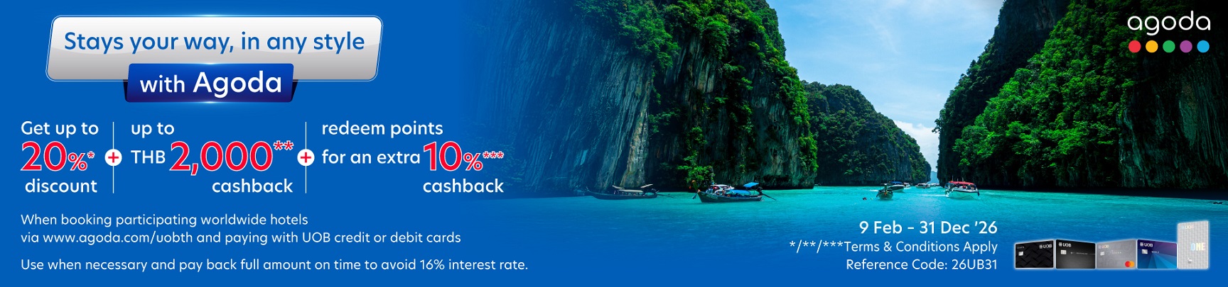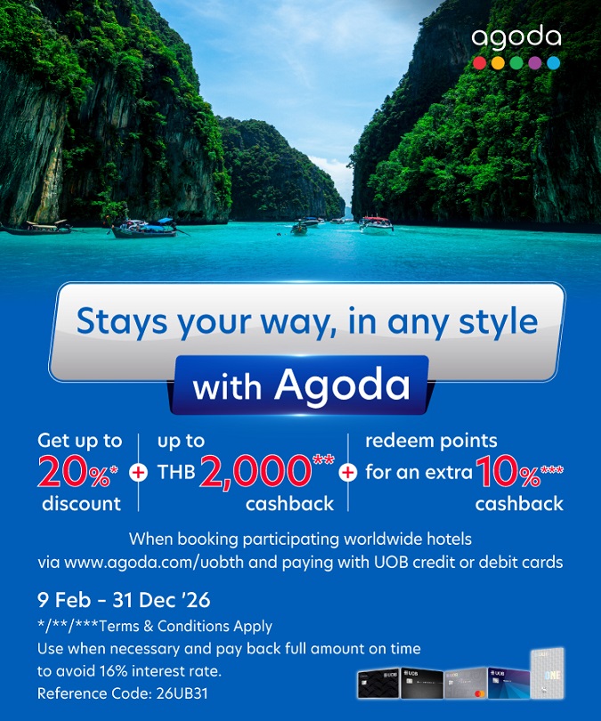 via www.agoda.com/uobth and paying with UOB credit or debit cards