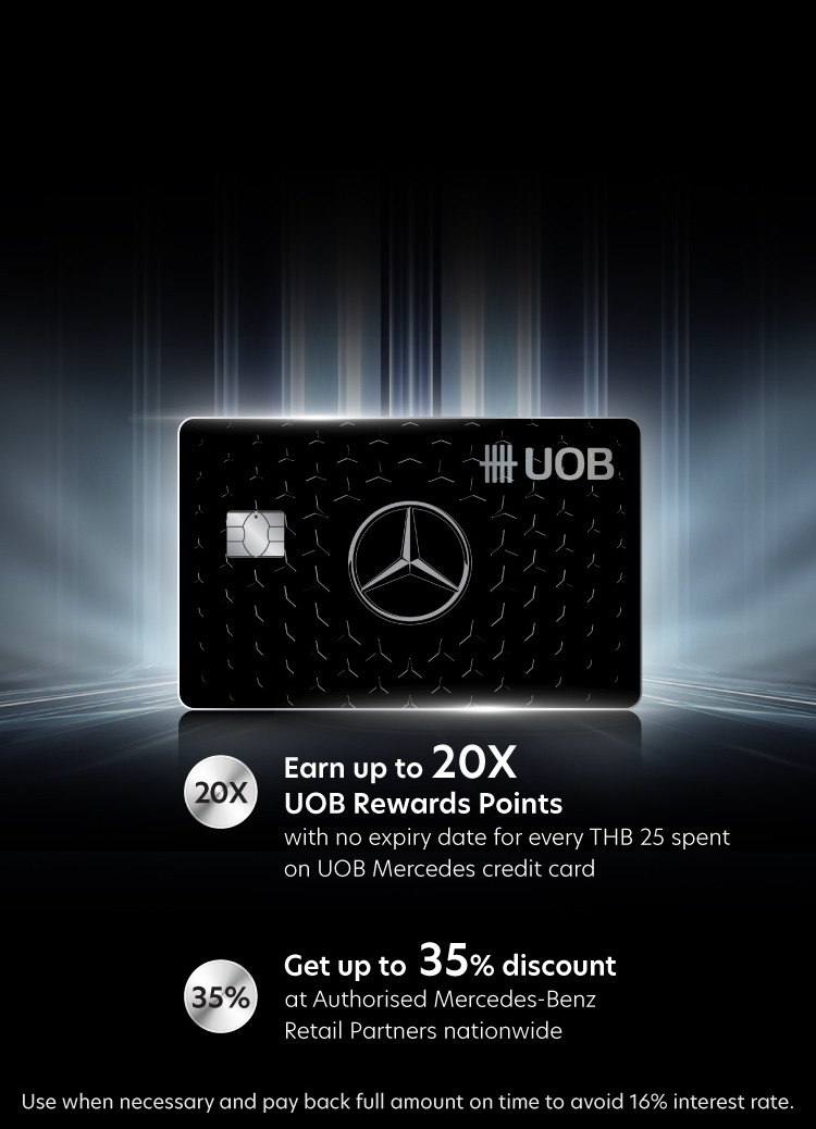 Earn 4X UOB Rewards Points for every THB 25 spent at Authorised Mercedes-Benz Retail Partners nationwide