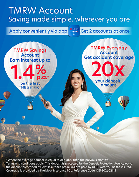 Receive free personal accident coverage 20 times of the deposit amount, maximum 10 million baht worldwide 24 hours a day.