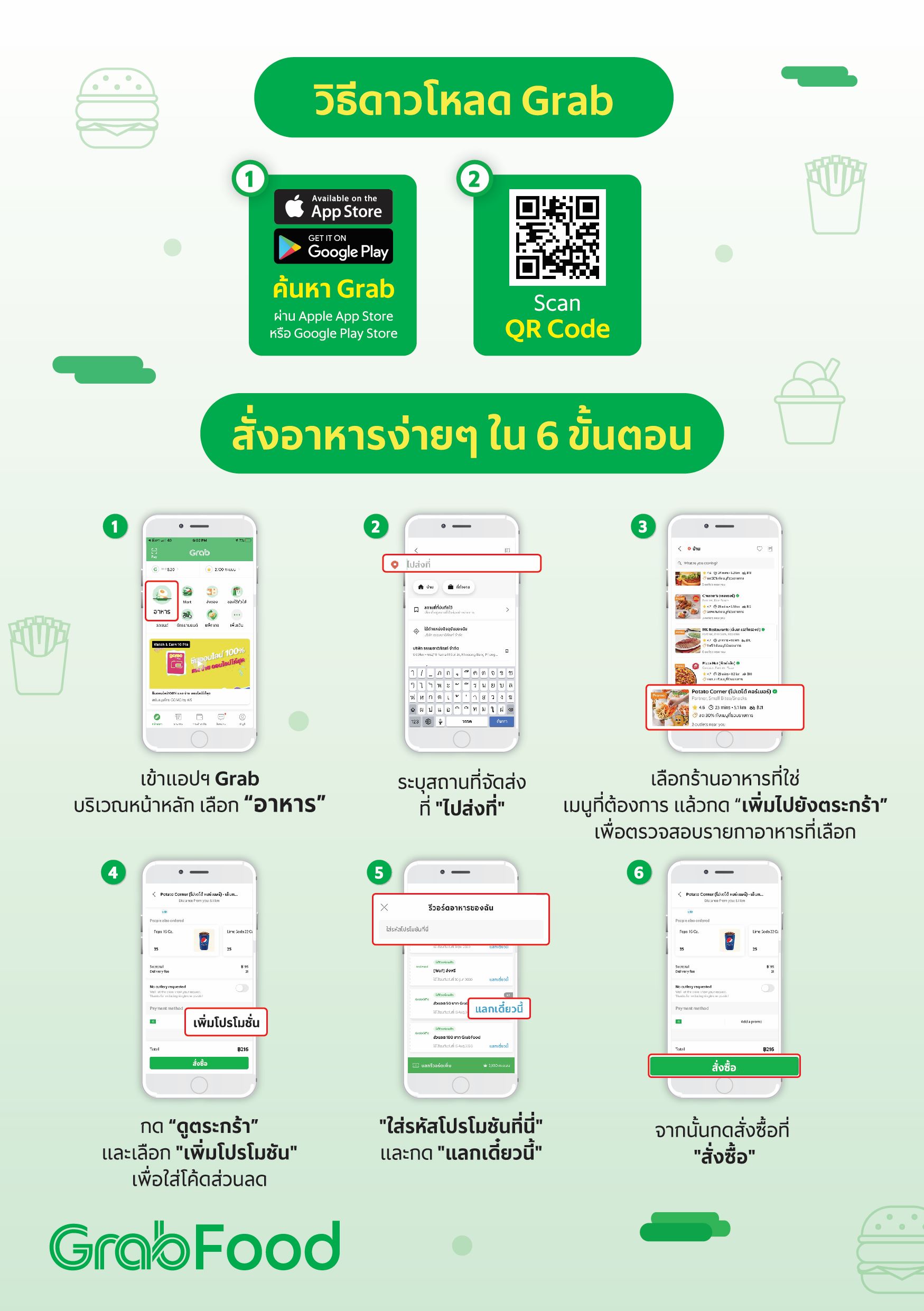 รับส่วนลด GrabFood ผ่านบริการ ‘รับที่ร้าน’ (Self-Pickup) (สูงสุด 20 บาท/ครั้ง)