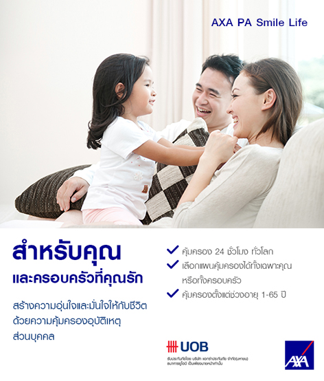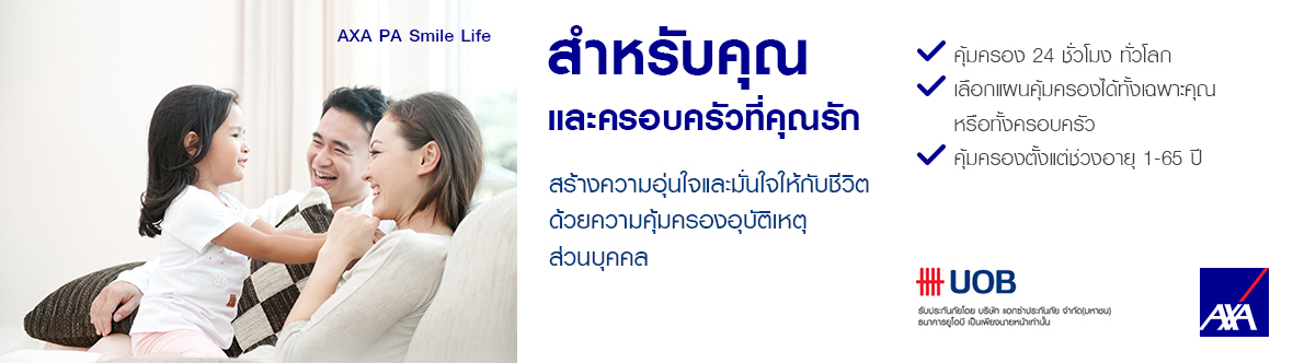 ธนาคารยูโอบี จำกัด (มหาชน) ใบอนุญาตเลขที่ ว00020/2526 ทำหน้าที่นำเสนอผลิตภัณฑ์และเป็นผู้จัดการให้บุคคลเข้าทำสัญญาประกันวินาศภัยและอำนวยความสำดวกในการรับชำระค่าเบี้ยประกันภัยเท่านั้น ผู้รับประกันวินาศภัย โดย บริษัท แอกซ่าประกันภัย จำกัด (มหาชน) และจะเป็นผู้รับผิดชอบตามเงื่อนไขและสิทธิประโยชน์ตามที่ระบุไว้ในกรมธรรม์ประกันภัย