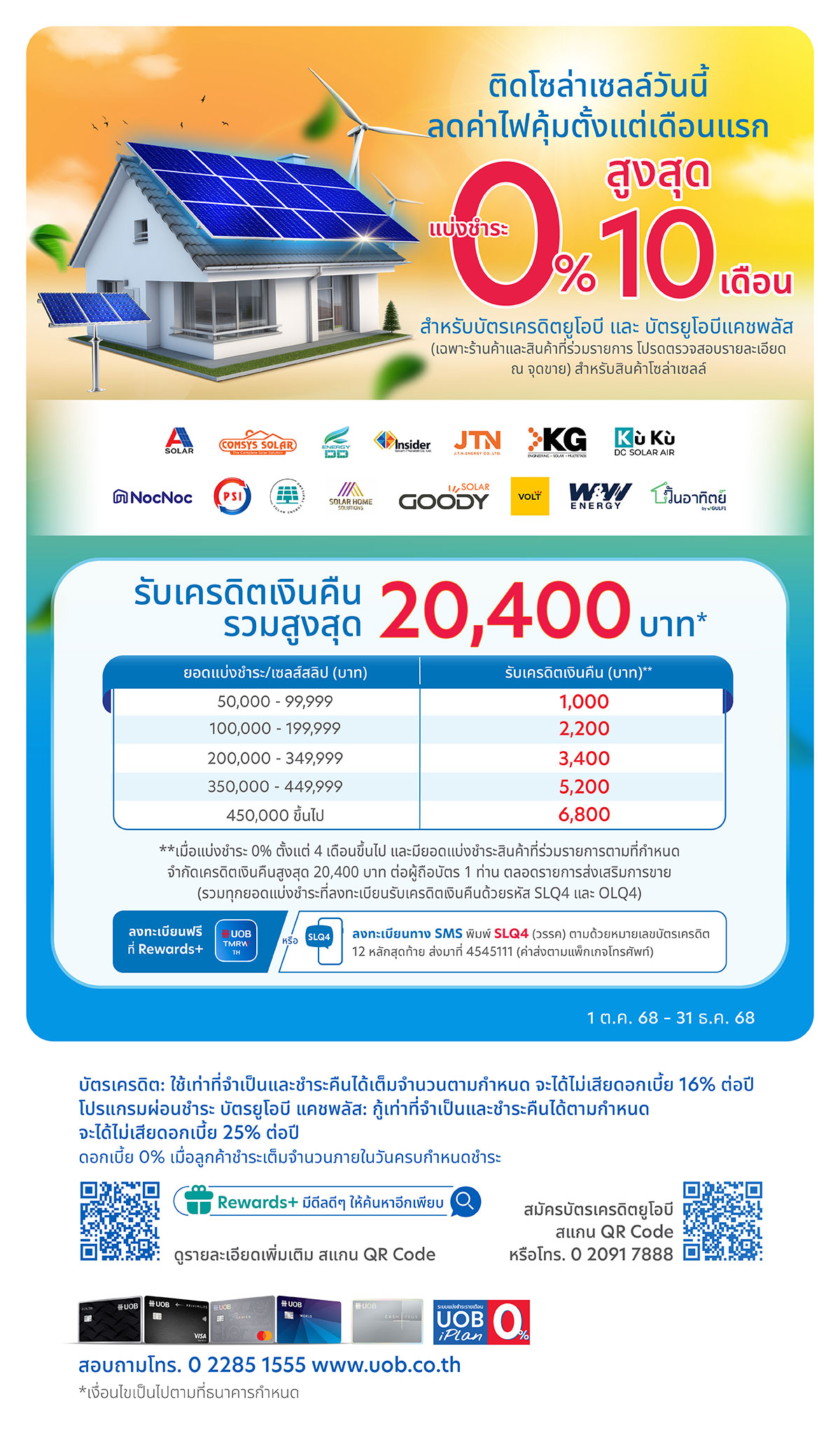 สอบถามรายละเอียดเพิ่มเติมได้ที่ ศูนย์บริการลูกค้าธนาคารยูโอบี โทร 0-2285-1555 |