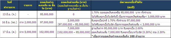 - ตัวอย่างการรับอัตราดอกเบี้ยโบนัส