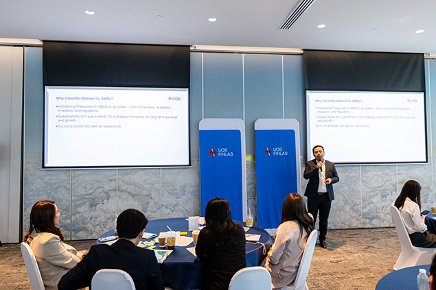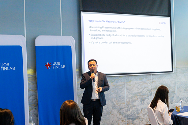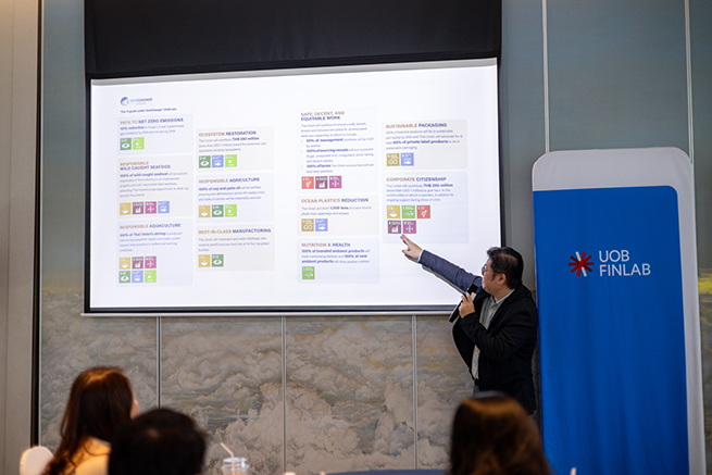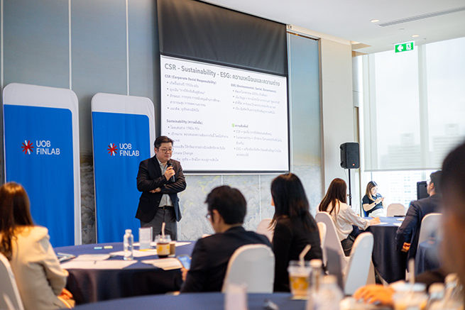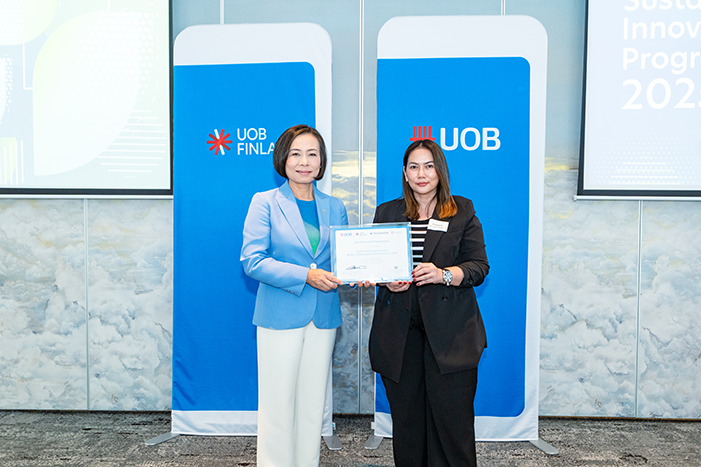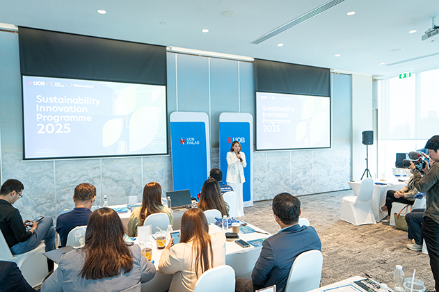 โครงการ Sustainability Innovation Programme 2025 ซึ่งจัดขึ้นเป็นปีที่ 3 โดยความร่วมมือระหว่าง UOB FinLab และ Techsauce เป็นโครงการที่มุ่งส่งเสริมผู้ประกอบการ SMEs ไทยให้สามารถดำเนินธุรกิจอย่างยั่งยืน โดยใช้แนวทาง ESG (Environmental, Social, Governance) และนวัตกรรมในการพัฒนาโมเดลธุรกิจที่สร้างผลกระทบเชิงบวกต่อสิ่งแวดล้อมและสังคม พร้อมทั้งเพิ่มขีดความสามารถในการแข่งขันในระยะยาวผ่านกิจกรรมเวิร์กช็อป การให้คำปรึกษา และการนำเสนอแผนธุรกิจที่ยั่งยืน.